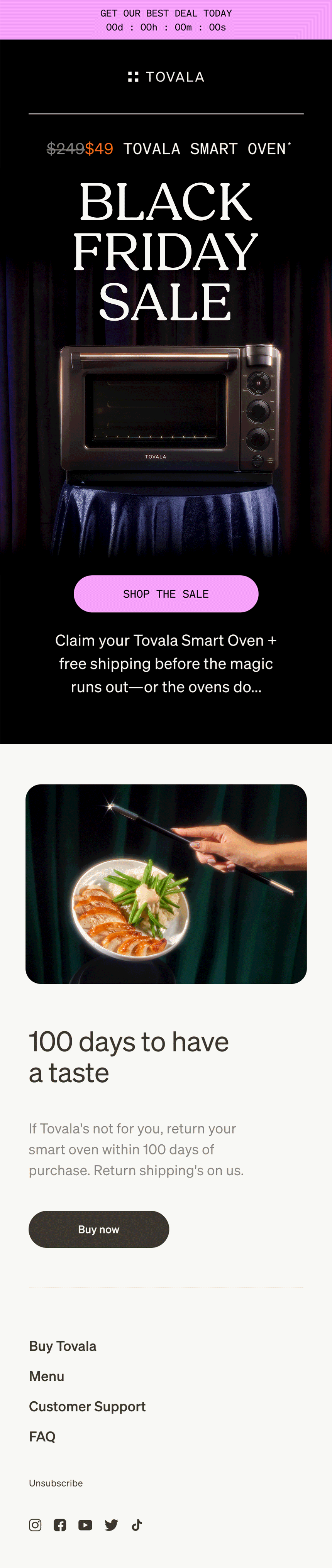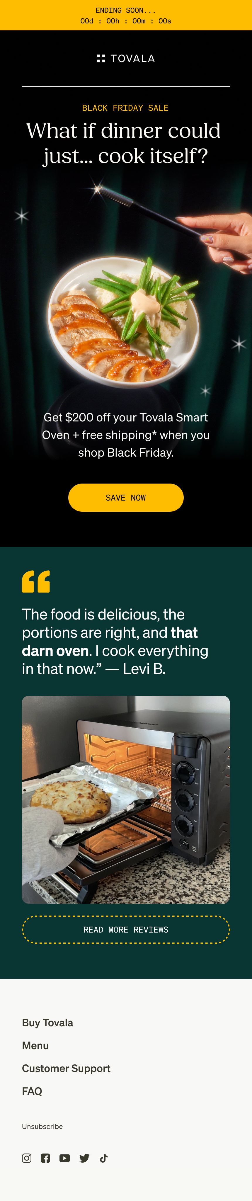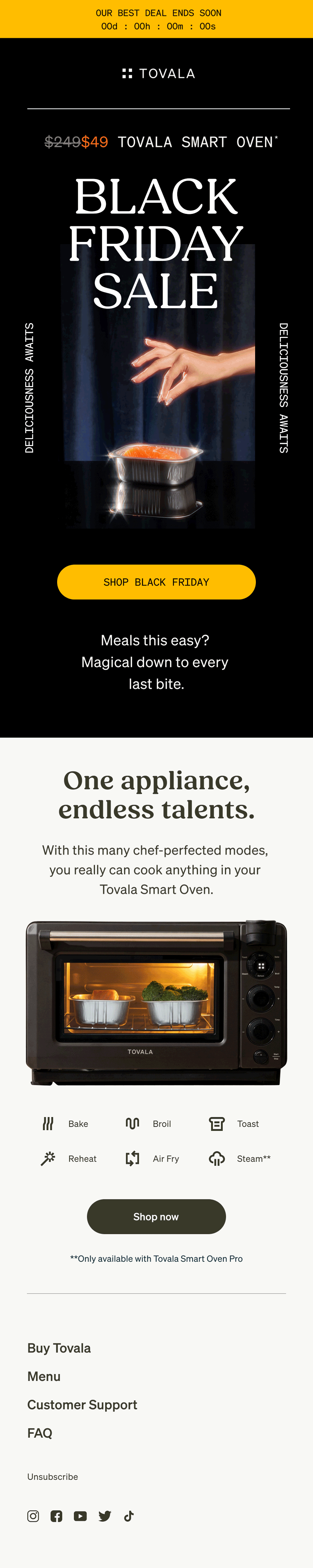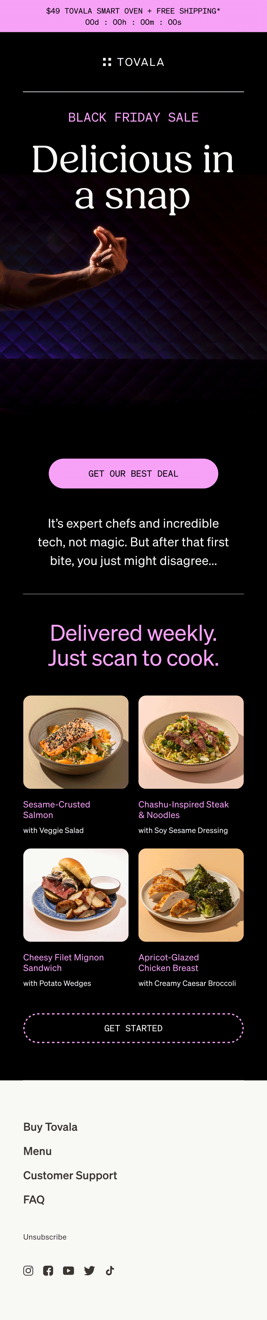 For our Black Friday / Cyber Monday campaign, our team worked with Breakfast For Dinner Studio to produce custom assets inspired by the “Magic” of our Tovala Smart Oven. We then used these assets to craft a campaign showcasing our food and tech.