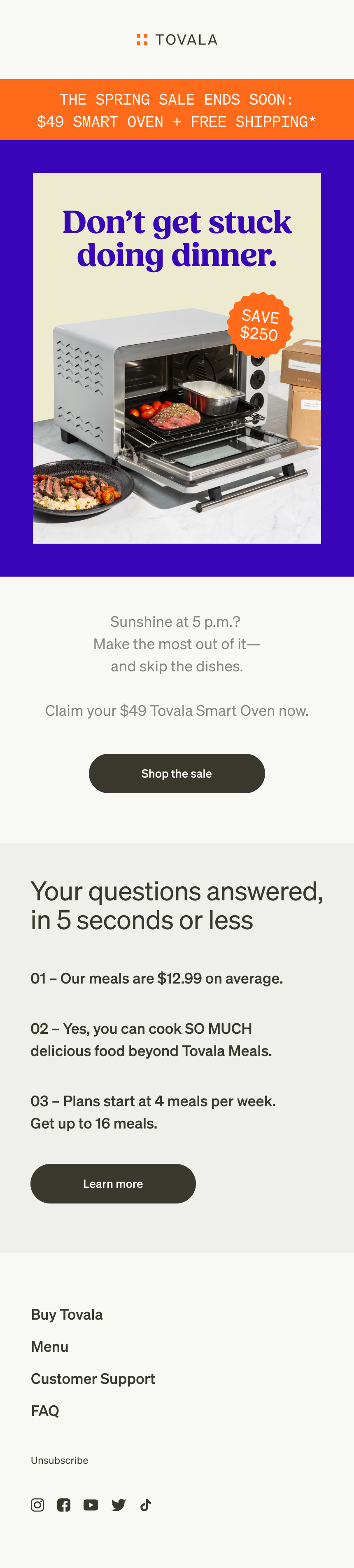 For every sale period at Tovala, we create a robust marketing campaign to target prospective customers. In order to increase efficiency, I led the creation of a modular design template, featuring a variety of messaging modules and hero images.